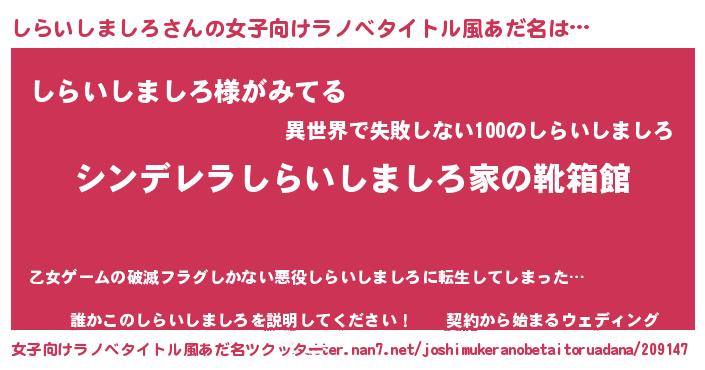 | 胡散臭い通販商品みたいなあだ名 | 『信頼と実績のサプリメント…その名も「しらいしましろ」』 |