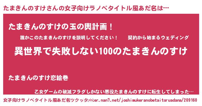 | 男性向けラノベタイトル風あだ名 | 『たまきんのすけという概念が存在しない退屈な世界 』 |