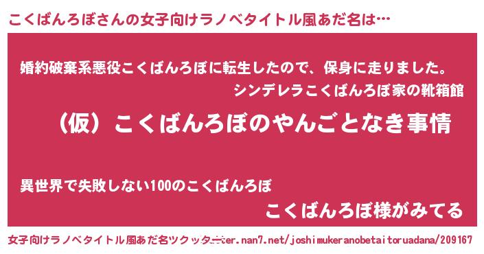 | 胡散臭い通販商品みたいなあだ名 | 『必ず成功するブレスレット…その名も「こくばんろぼ」』 |