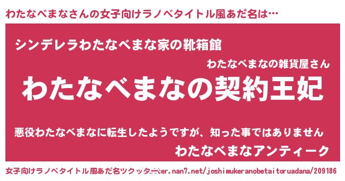 | 男性向けラノベタイトル風あだ名 | 『誰もが恐れるあのわたなべまなが、ぼくの専属メイドになるようです。』 |
