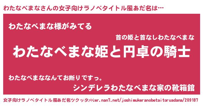 | 男性向けラノベタイトル風あだ名 | 『わたなべまなの憂鬱』 |