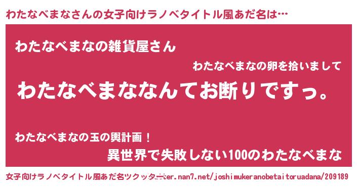 | 男性向けラノベタイトル風あだ名 | 『魔法科高校のわたなべまな』 |