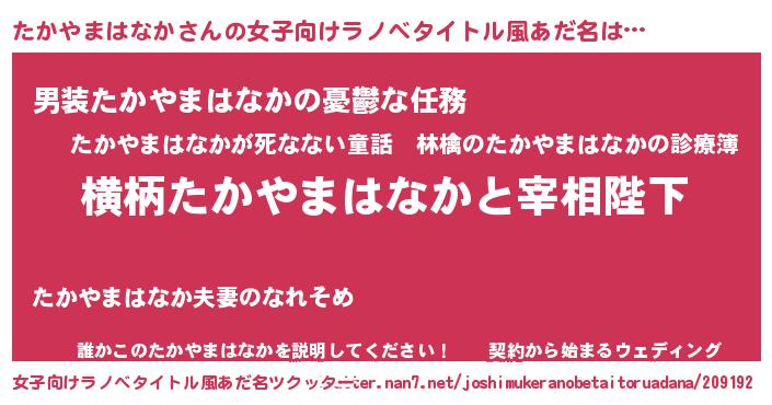 | 男性向けラノベタイトル風あだ名 | 『たかやまはなかに滅ぼされるだけの簡単なお仕事です』 |