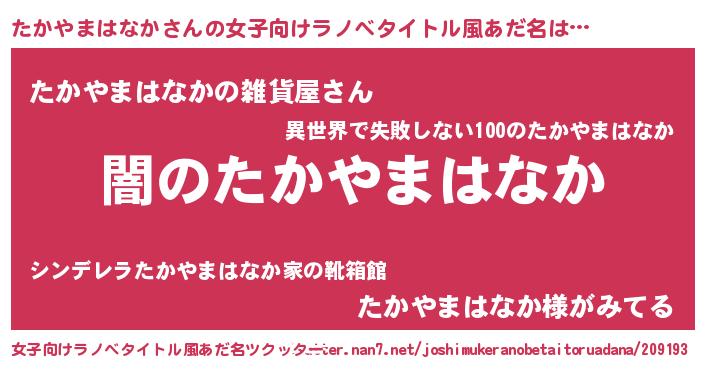 | 意味不明あだ名 | 『自称たかやまはなか』 |
