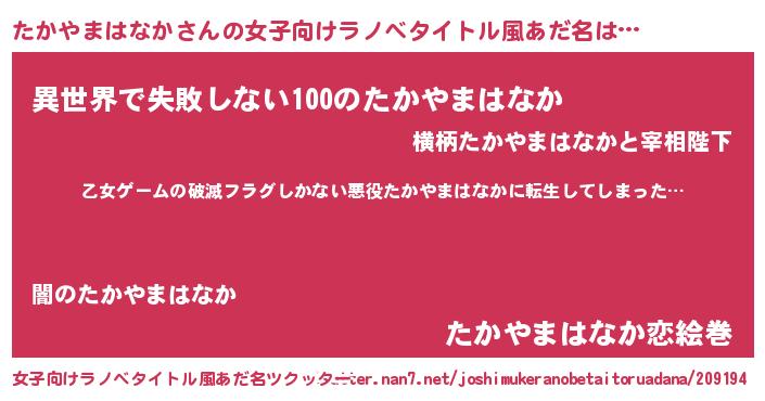 | 男性向けラノベタイトル風あだ名 | 『魔弾の王とたかやまはなか』 |