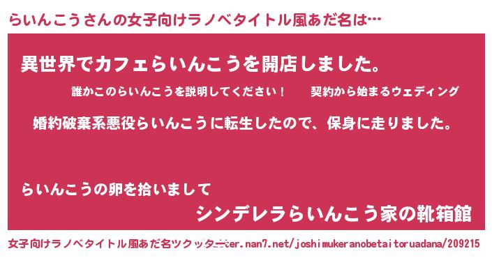 | 男性向けラノベタイトル風あだ名 | 『転生したららいんこうだった件』 |