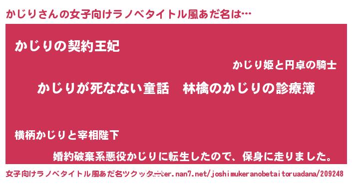 | 男性向けラノベタイトル風あだ名 | 『魔弾の王とかじり』『カジリスレイヤー』 |