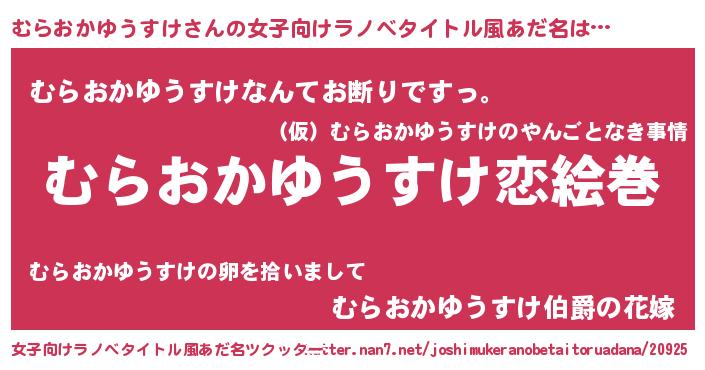 | 男性向けラノベタイトル風あだ名 | 『ノーゲーム・ノームラオカユウスケ』 |