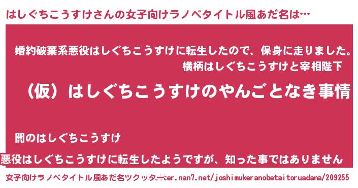 | 男性向けラノベタイトル風あだ名 | 『はしぐちこうすけの憂鬱』 |