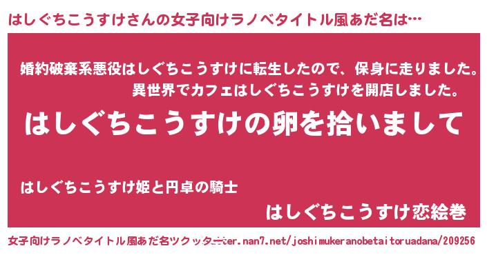 | 男性向けラノベタイトル風あだ名 | 『はしぐちこうすけの嫁は女の子じゃないと思った?』 |