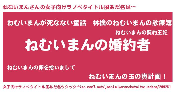 | 胡散臭い通販商品みたいなあだ名 | 『運命の人と巡り会える高級そうな壺…その名も「ねむいまん」』 |