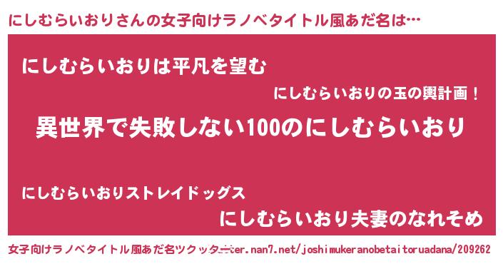 | 意味不明あだ名 | 『永久保存にしむらいおり』 |