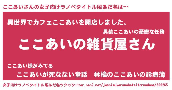 | 可愛いあだ名 | 『ここちー』『ここあいママ』 |
