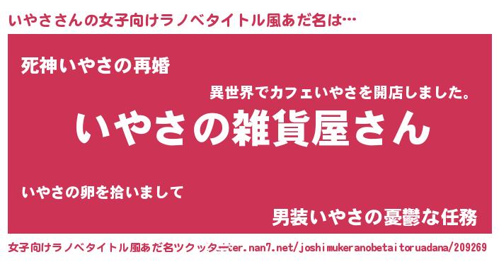 | 胡散臭い通販商品みたいなあだ名 | 『幸せが訪れる高級そうな壺…その名も「いやさ」』 |