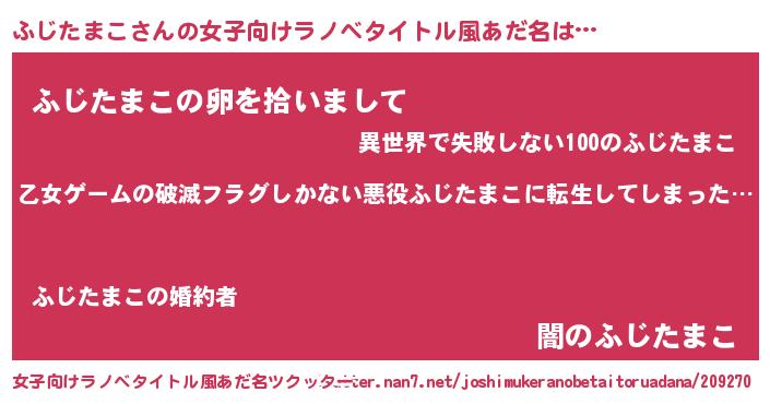 | 意味不明あだ名 | 『住所不定無職ふじたまこ(14歳)』 |