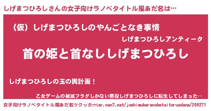 | 男性向けラノベタイトル風あだ名 | 『はたらくしげまつひろしさま!』 |