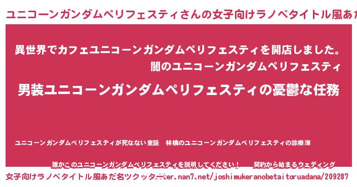 | 意味不明あだ名 | 『永久保存ユニコーンガンダムペリフェスティ』 |