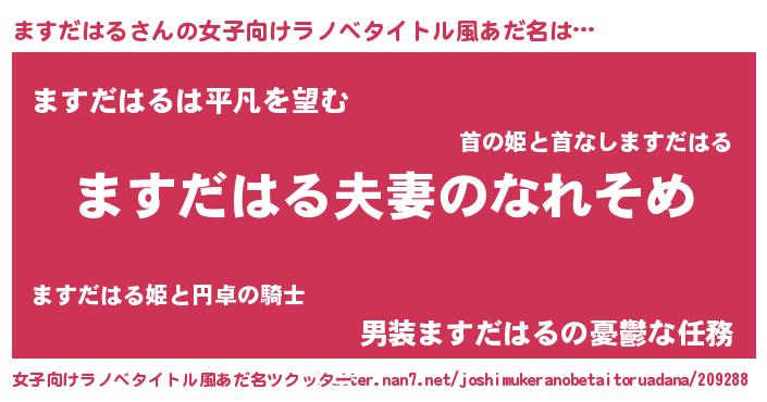 | 男性向けラノベタイトル風あだ名 | 『おまえをオタクにしてやるから、俺をますだはるにしてくれ! 』 |