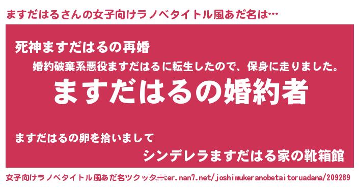 | 男性向けラノベタイトル風あだ名 | 『うちの娘の為ならば、俺はもしかしたらますだはるも倒せるかもしれない。』 |