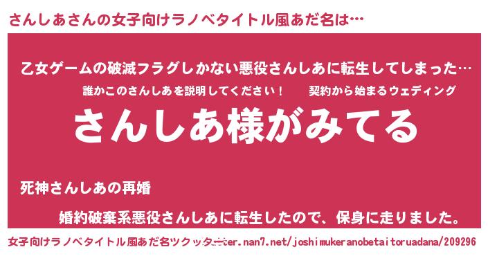 | 胡散臭い通販商品みたいなあだ名 | 『全米が絶賛したサプリメント…その名も「さんしあ」』 |