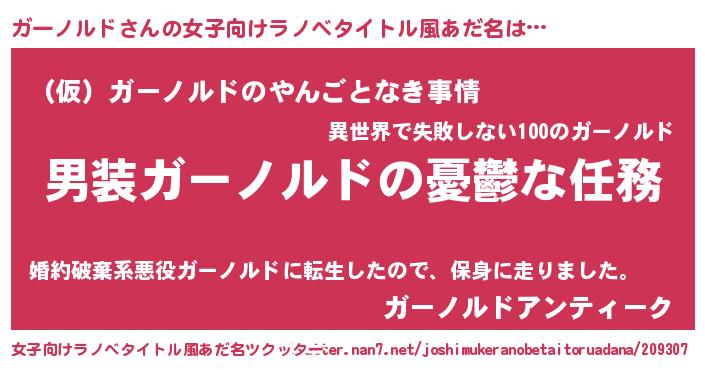| 胡散臭い通販商品みたいなあだ名 | 『億万長者になれる水晶球…その名も「ガーノルド」』 |