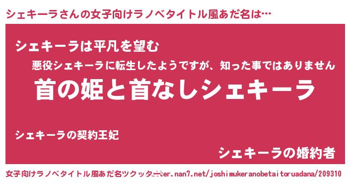 | 男性向けラノベタイトル風あだ名 | 『はたらくシェキーラさま!』 |
