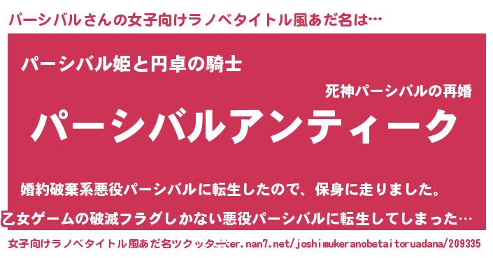 | 意味不明あだ名 | 『自称パーシバル』『ペロリンパーシバル』 |