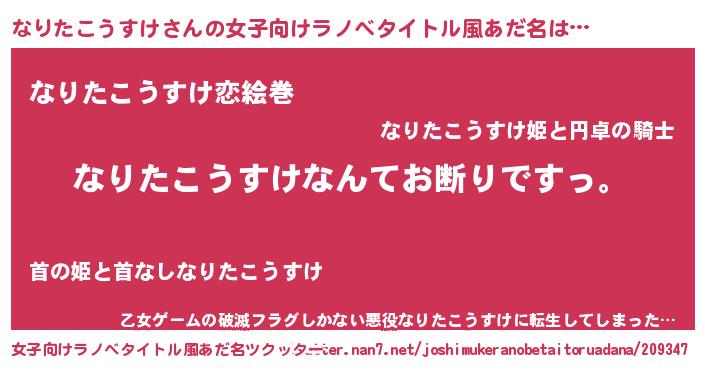 | 意味不明あだ名 | 『自称なりたこうすけ』 |