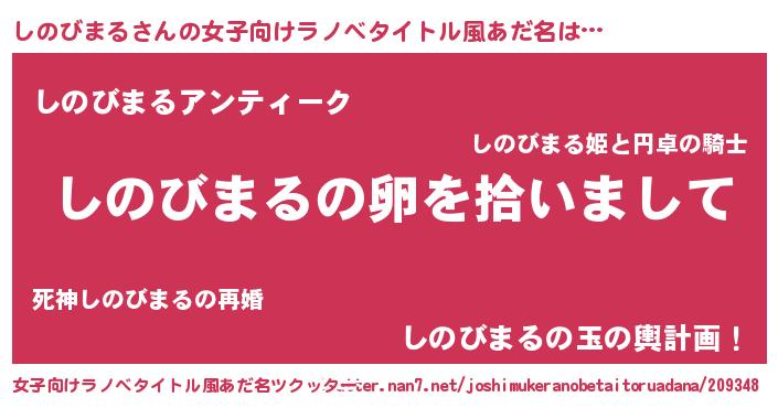 | 男性向けラノベタイトル風あだ名 | 『しのびまるの嫁は女の子じゃないと思った?』 |