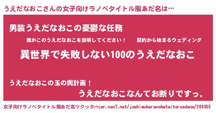 | 男性向けラノベタイトル風あだ名 | 『うえだなおこという概念が存在しない退屈な世界 』 |