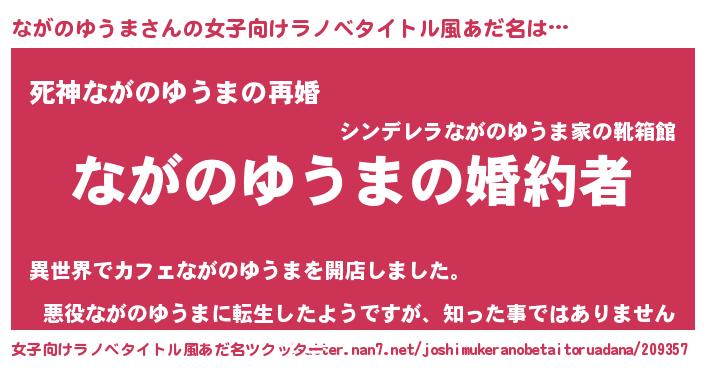 | 意味不明あだ名 | 『ながのゆうまフォーエバー』 |