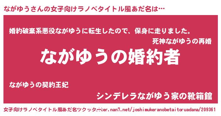 | ヘコむあだ名 | 『酢こんぶ』『ながゆう(小並感)』 |