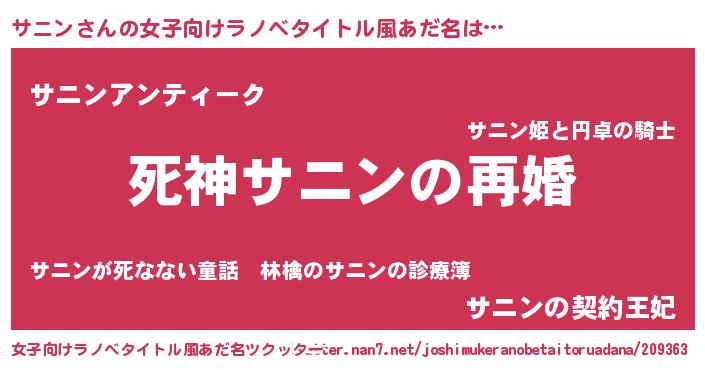 | 男性向けラノベタイトル風あだ名 | 『ノーゲーム・ノーサニン』 |
