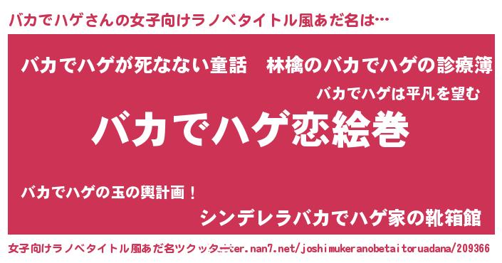 | 男性向けラノベタイトル風あだ名 | 『ノーゲーム・ノーバカデハゲ』 |