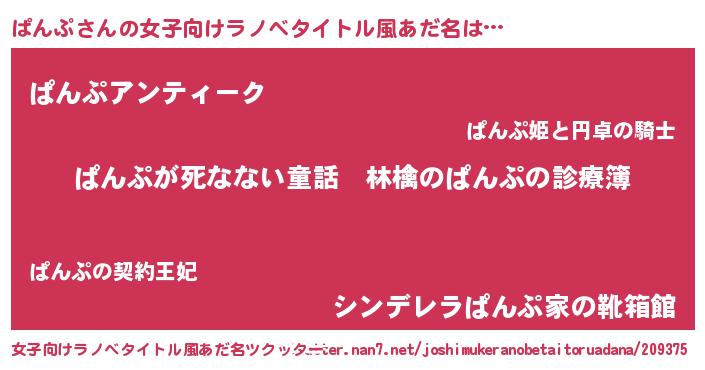 | 胡散臭い通販商品みたいなあだ名 | 『ハリウッド女優が絶賛した世界で10本だけ現存している希少なブランデー…その名も「ぱんぷ」』 |