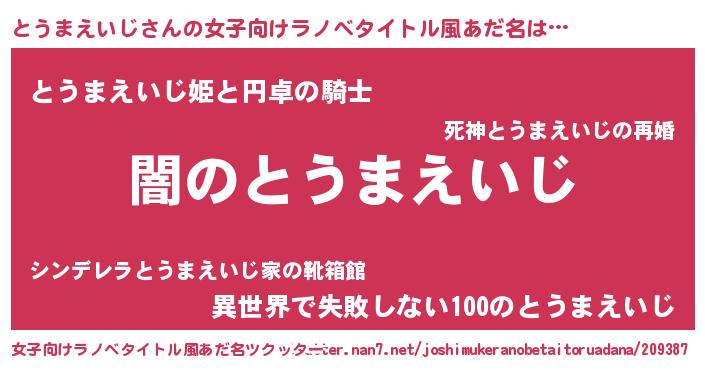 | 意味不明あだ名 | 『自称とうまえいじ』 |