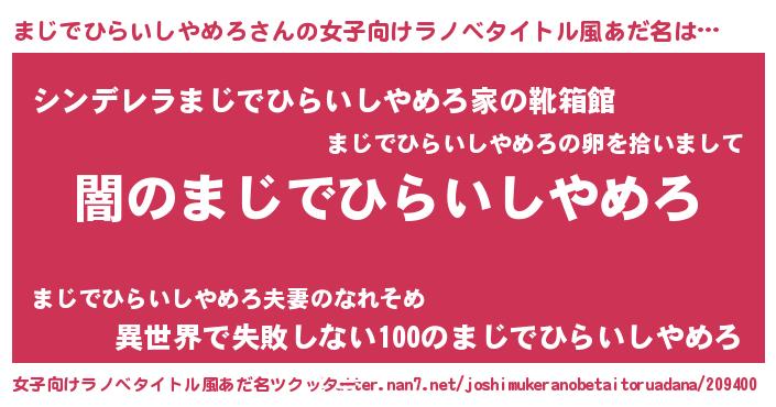 | 男性向けラノベタイトル風あだ名 | 『Re:まじでひらいしやめろから始める異世界生活』 |