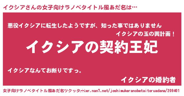 | 胡散臭い通販商品みたいなあだ名 | 『来世でも幸せになれる水素水…その名も「イクシア」』 |