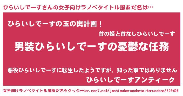 | 男性向けラノベタイトル風あだ名 | 『冴えないひらいしでーすの育てかた』 |
