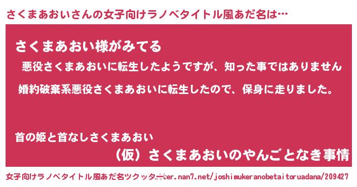 | 男性向けラノベタイトル風あだ名 | 『転生したらさくまあおいだった件』 |
