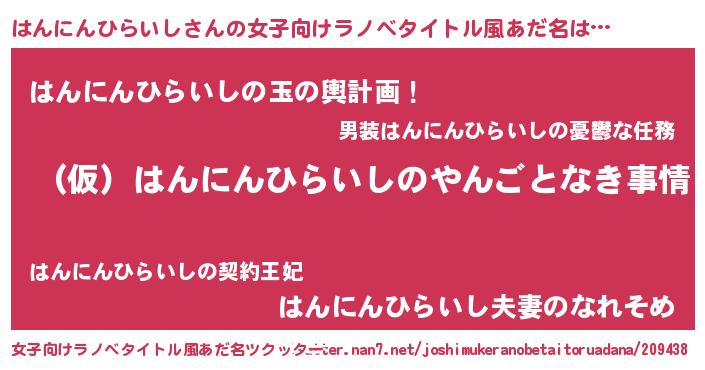 | 男性向けラノベタイトル風あだ名 | 『はんにんひらいしの憂鬱』 |