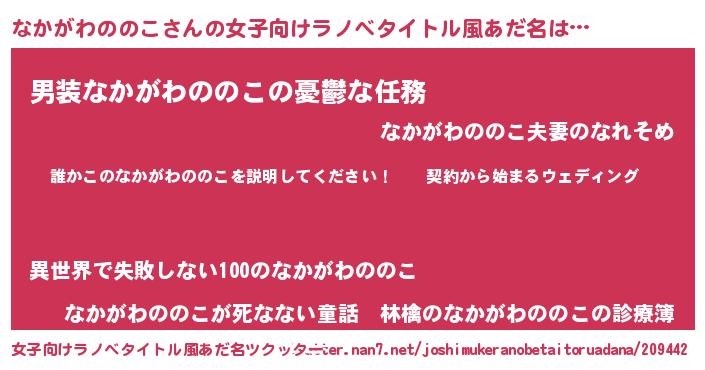 | 男性向けラノベタイトル風あだ名 | 『ナカガワノノコアートオンライン』 |