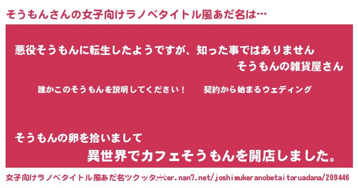 | 男性向けラノベタイトル風あだ名 | 『ソウモンアートオンライン』 |