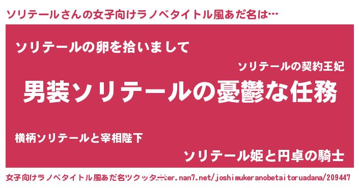 | 男性向けラノベタイトル風あだ名 | 『冴えないソリテールの育てかた』 |