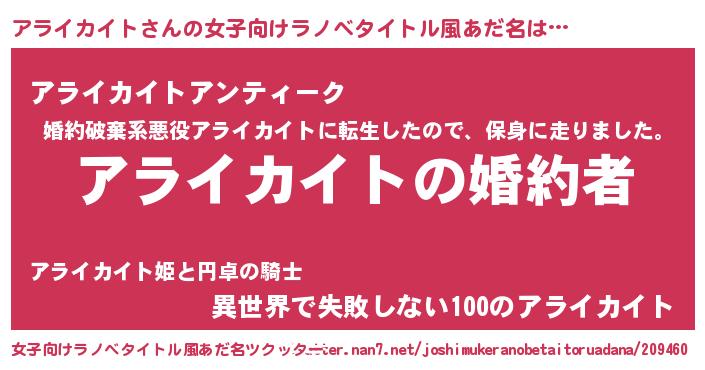 | ヘコむあだ名 | 『酢こんぶ』『アライカイト(遠い目)』 |