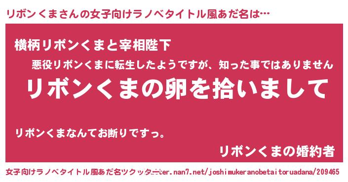 | 意味不明あだ名 | 『とにかく怪しいリボンくま』 |