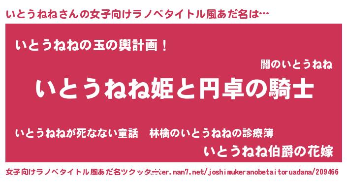 | 男性向けラノベタイトル風あだ名 | 『いとうねねの憂鬱』 |