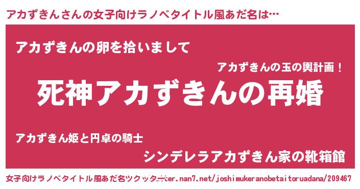 | 男性向けラノベタイトル風あだ名 | 『ノーゲーム・ノーアカズキン』 |