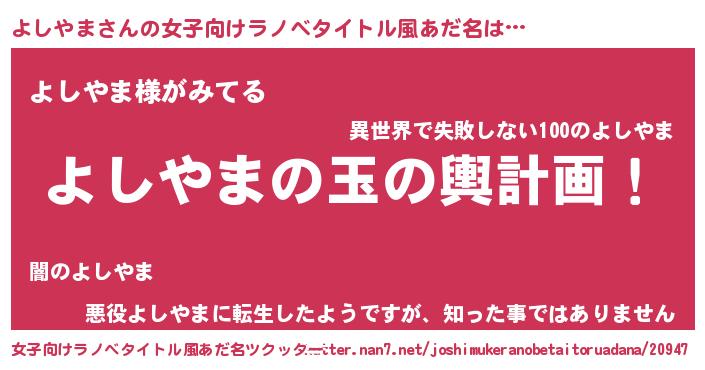 | ファンタジー風あだ名 | 『ユリヨシヴァット』『ファントムヨシス』 |