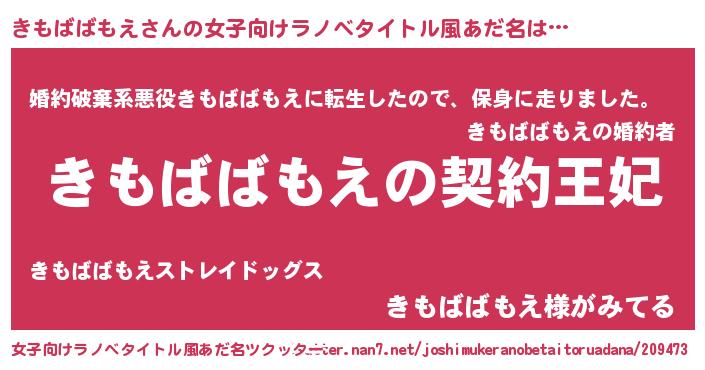 | 男性向けラノベタイトル風あだ名 | 『きもばばもえという概念が存在しない退屈な世界 』 |